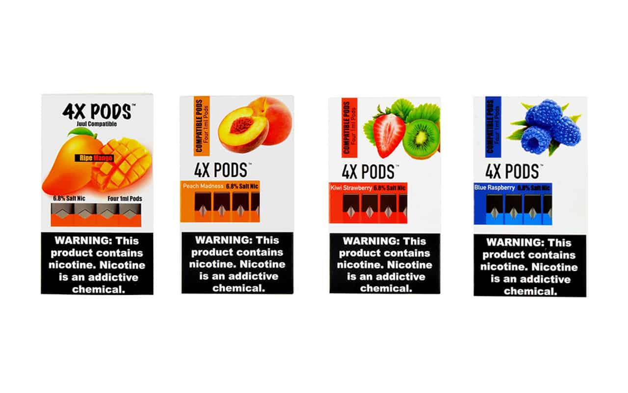 JUUL互換性ポッドブランドの中でも人気があり、フレイバーが豊富なPuff pods(パフポッド) はべイプポッドが4個入っておりべイプポッド1個あたりの容量が1.0mlと純正JUULPODSに比べて増量のため、1カートリッジあたり約300回の吸引が楽しめます!ニコチン濃度は5%(50mgニコチン)です。やはりマンゴフレイバーが一番人気です!フレイバーにアイスと付くものはメンソールタイプのミックスフレイバーとなります。